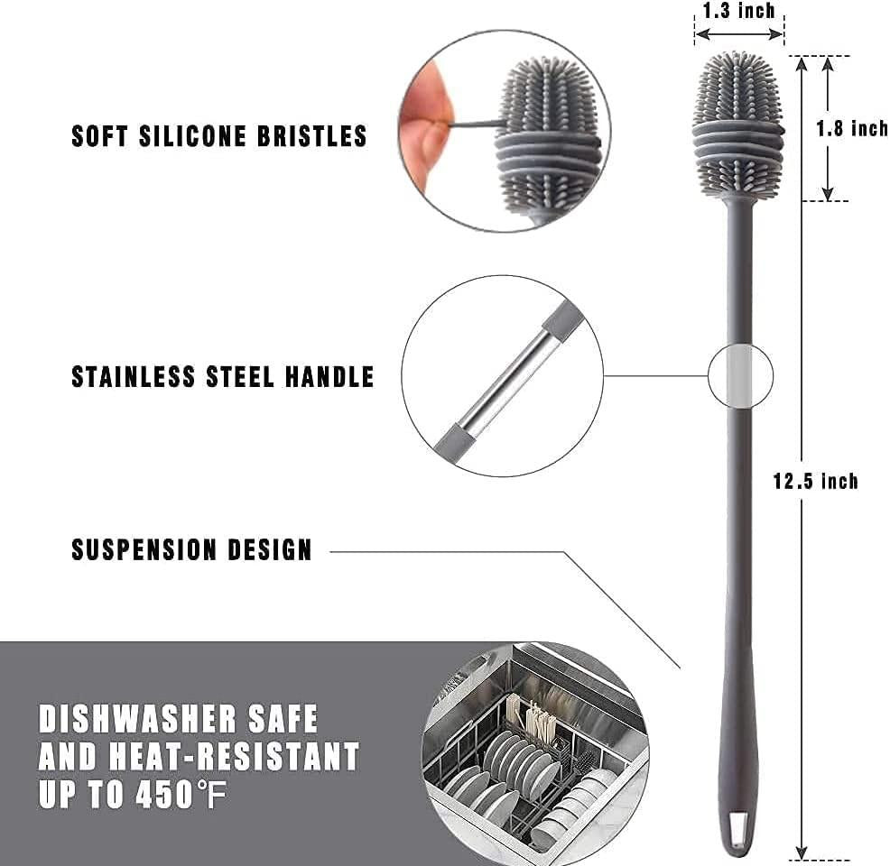 • Silicone Bottle Cleaning Brush Is Designed To Reach Down Into Every Corner Of The Bottles To Properly Clean Them By Cleaning Residue